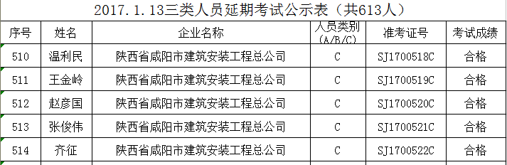 現(xiàn)將全省2017年1月13日受理的袁國慶等613人的建筑施工企業(yè)“三類人員”繼續(xù)教育考試成績予以公布,并就有關(guān)事項(xiàng)通知如下: